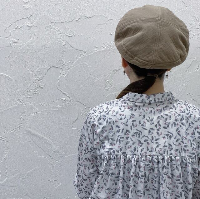 後ろ身頃のヨーク幅を広げ、ギャザーを入れ、春のブラウスらしい軽い印象になるようにデザインしています。