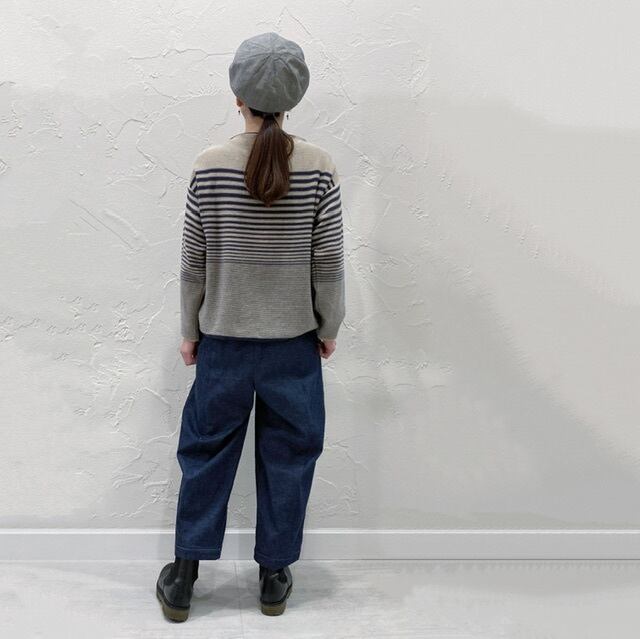 袖丈は9分袖で、カットソー感覚のように一枚で着て頂けるニットです。