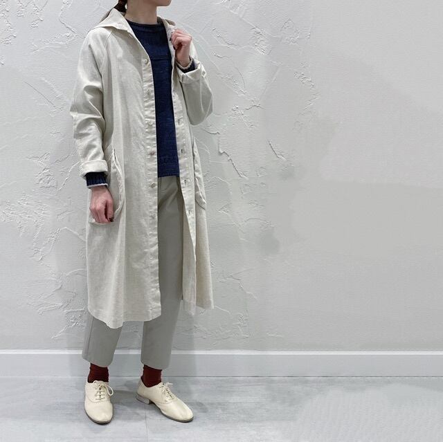 クラシックな生地に合わせたフードデザインと長い着丈が程よいカジュアルなバランスでおススメです。