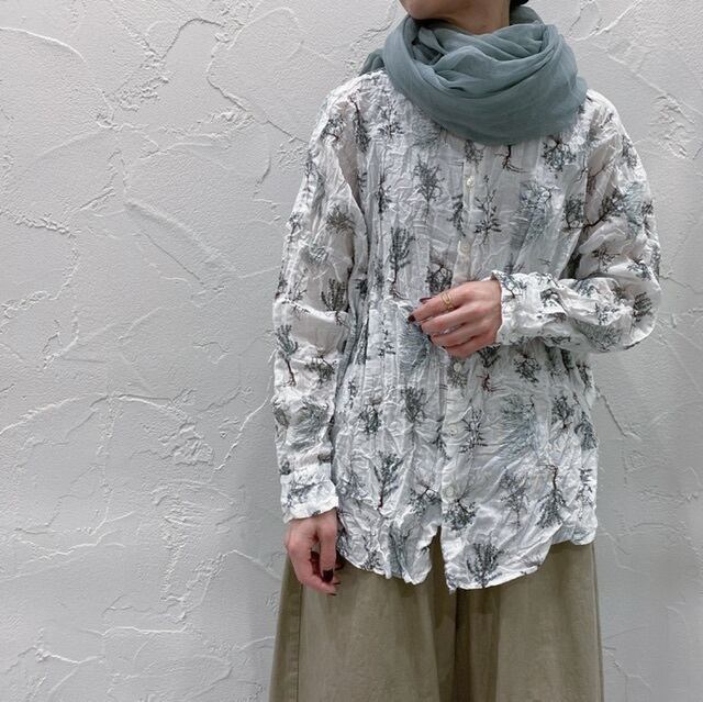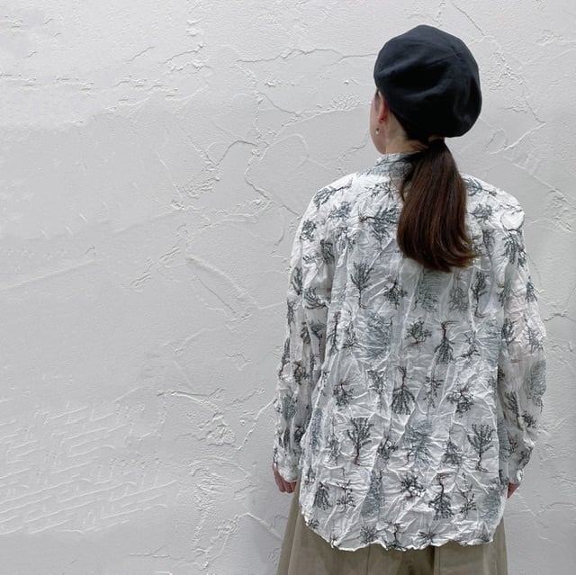 pas de calaisのシーズンテーマである『Wild Flowers=野草』をプリントした、長袖ブラウス。