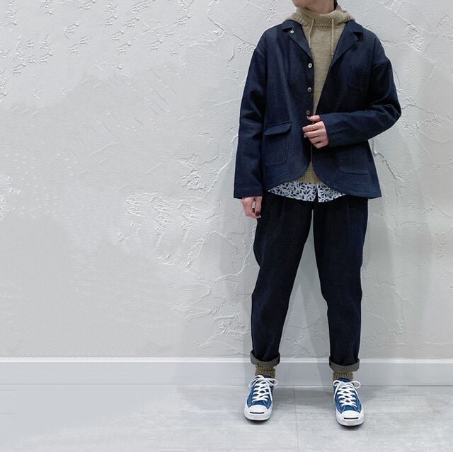 生地に表情のあるデニム素材だからこそシンプルなアイテムにも合い、お手持ちのアイテムを活かしてくれる商品です。