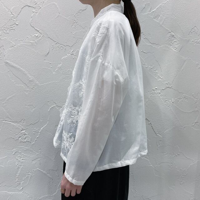 mizuiro ind人気のレーススタンドカラーワイドシャツ。