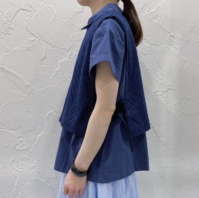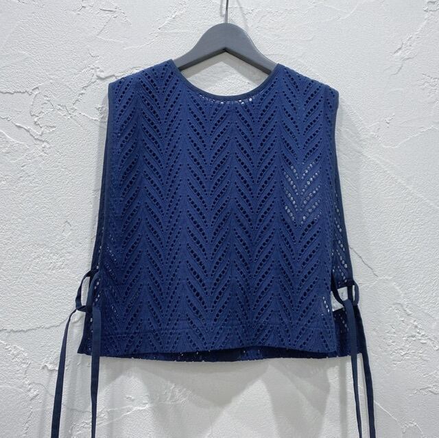 リーフ柄にカットワークされたヴィンテージ感漂うレース素材を使用したサマージレ。