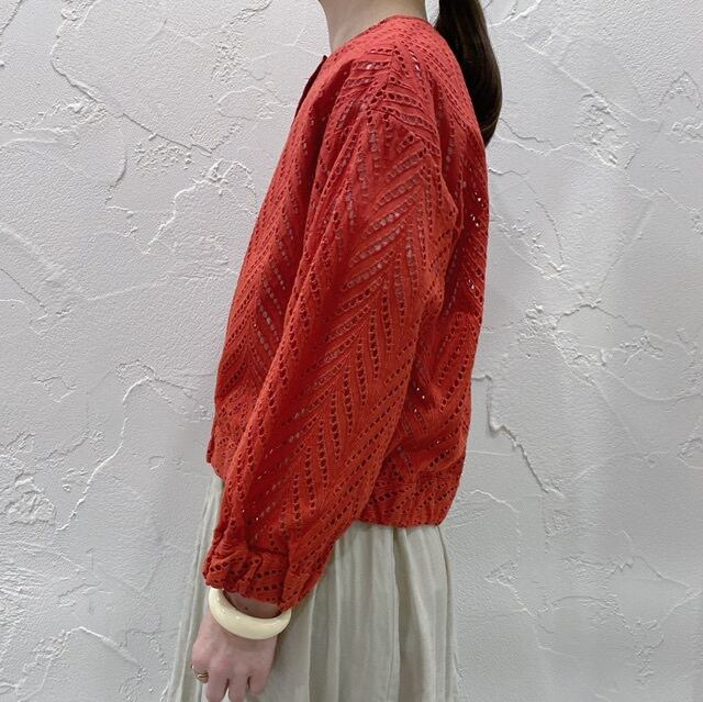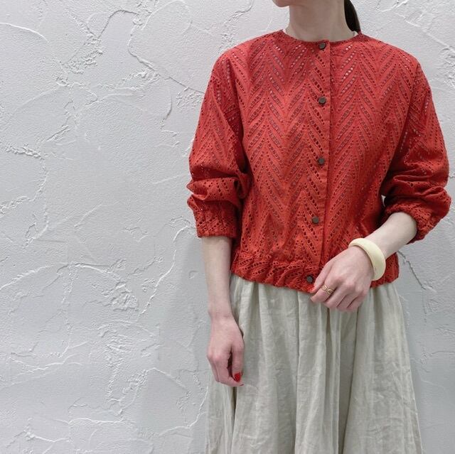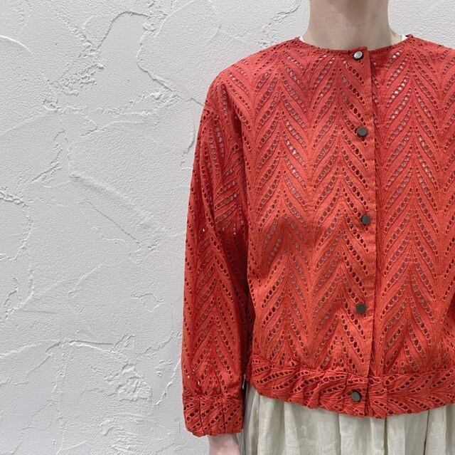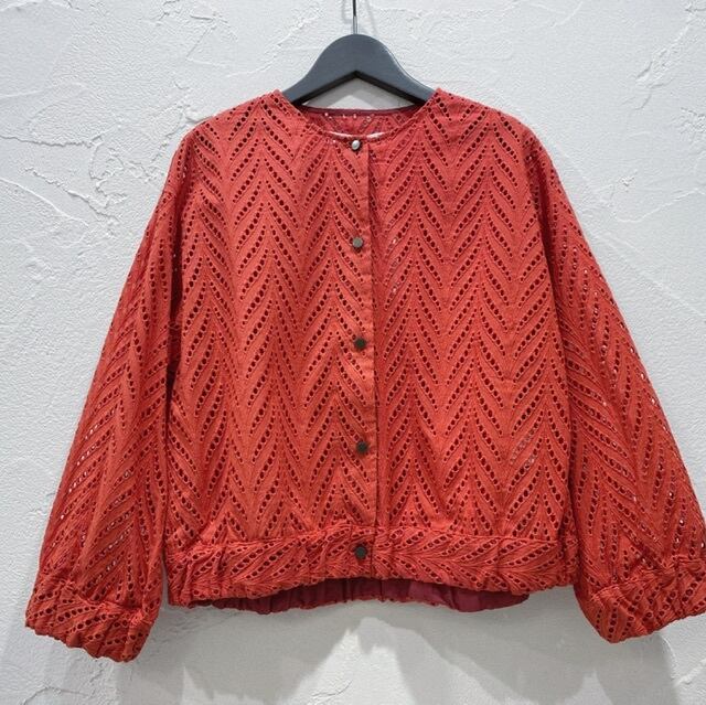 リーフ柄にカットワークされたヴィンテージ感漂うレース素材を使用したサマージャケットです。