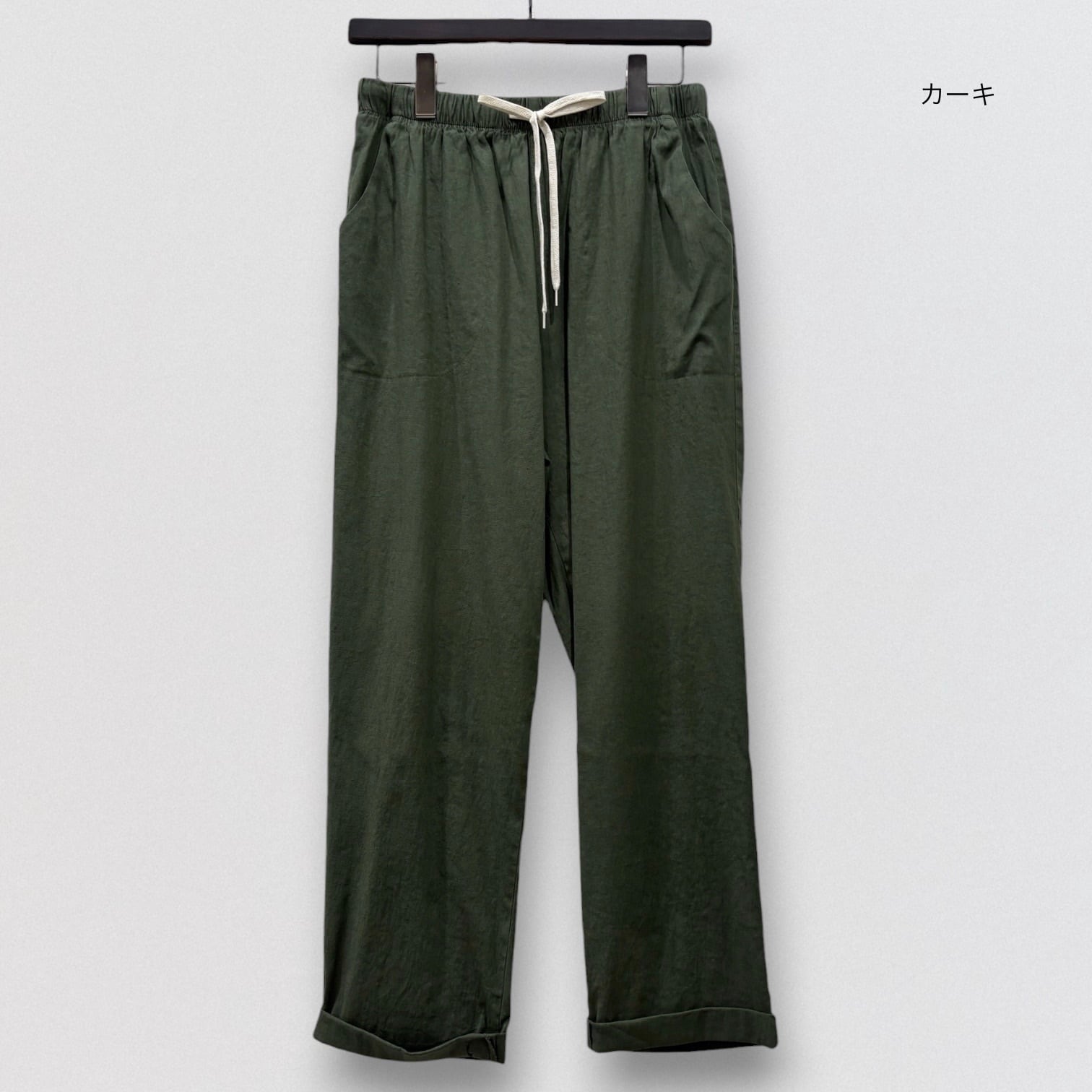 ストレッチが効いたコットンレーヨンリネン薄地素材使用、ゆったりしたシルエットでカジュアルに履きやすいイージーパンツです。