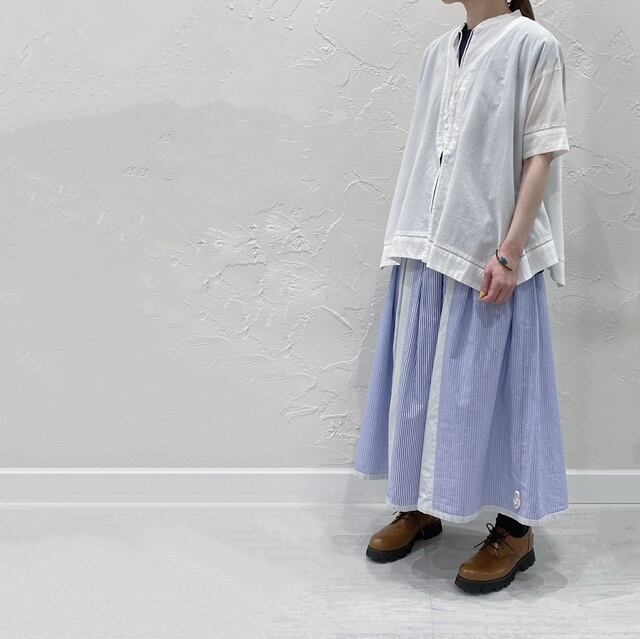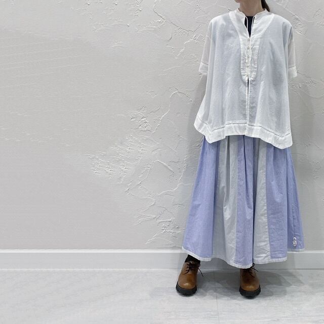 超長綿の先染めタイプライターを使用した、パッチワークスカートです。