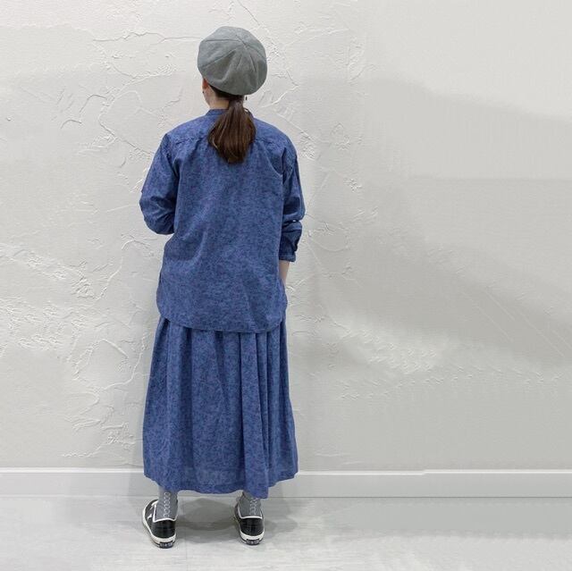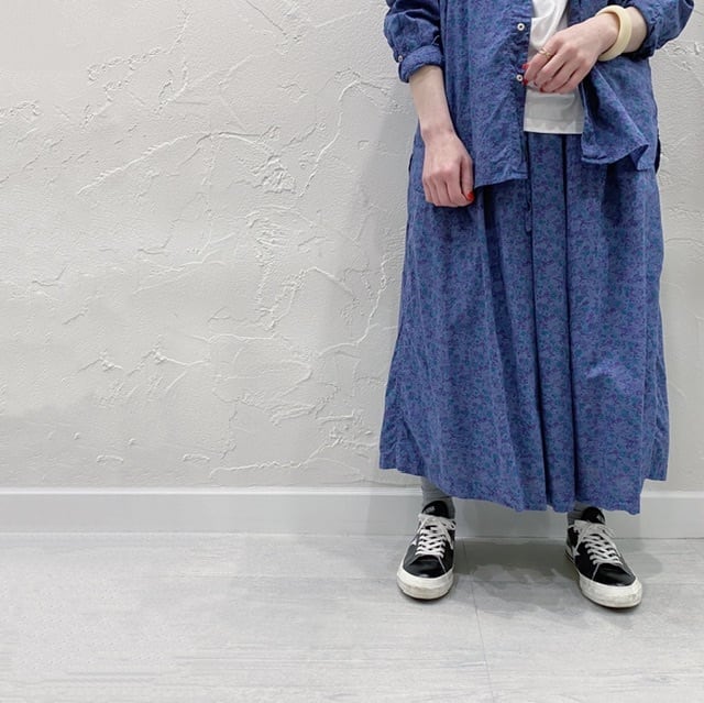 抽象的な小花柄のデザインと製品染めによる独特な風合いが、甘さを抑えた大人な印象に仕上げてくれています。