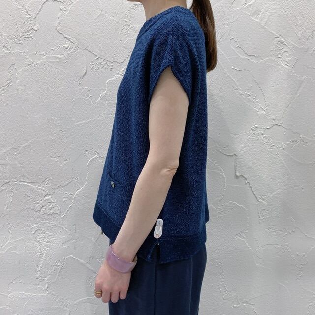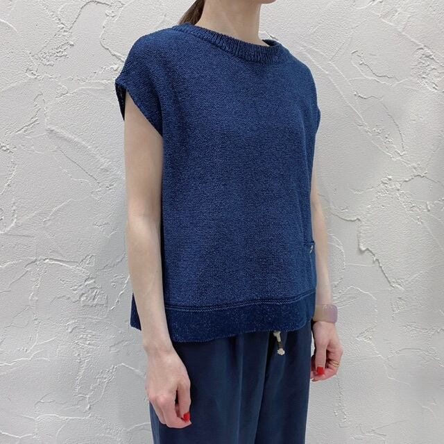 更には小さなポケットや前後で印象の違う衿ぐりなど遊びが加わったディテールがあります。春先にはベストとして、夏にはTシャツ感覚で着て頂けるアイテムです。