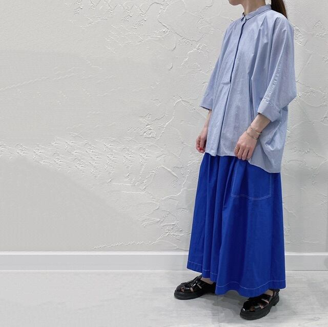 たっぷりとした身幅とドルマンスリーブで風通しがよく、リラックス感ある着こなしに。