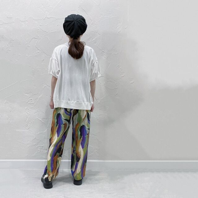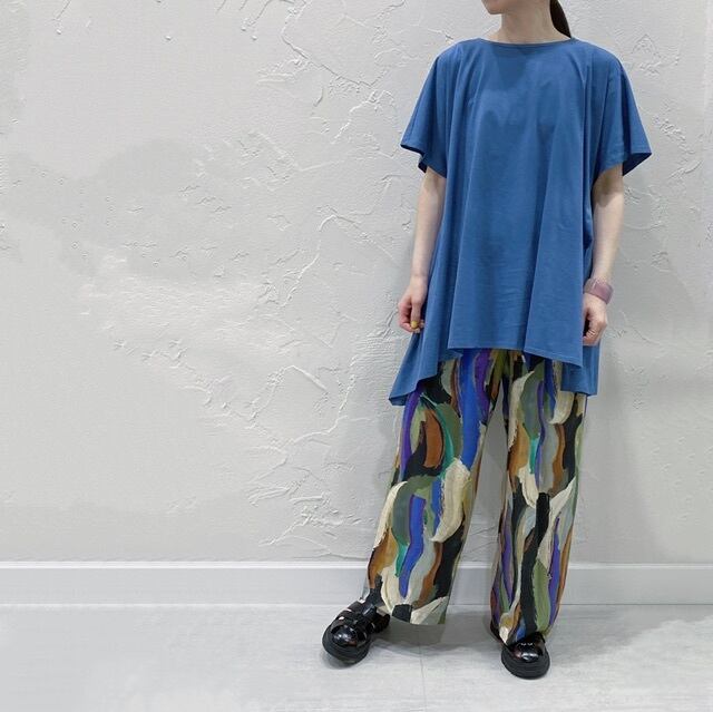 インパクトのあるアートなプリントは夏場は爽やかな印象に。