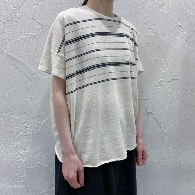 細め幅のボーダーがナチュラルで涼やかな印象の、夏にぷったりなアイテムです。