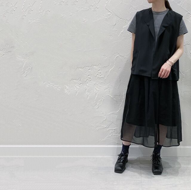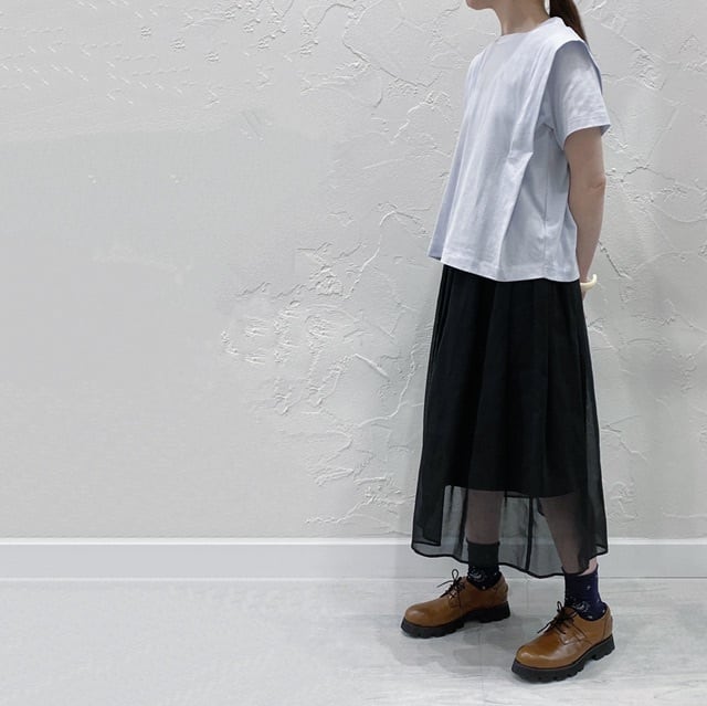 100双ボイルオーガンジーを重ね、ウエスト、インナーは40タイプライターを使用したシアープリーツスカートです。