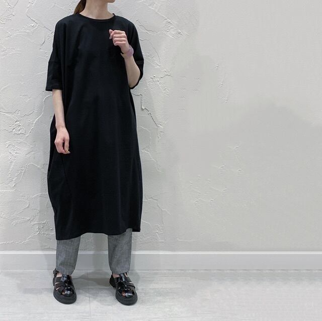 60シルケット天竺を使用したハーフスリーブコクーンロングワンピースです。