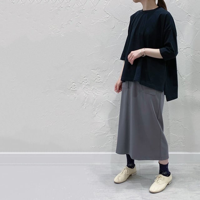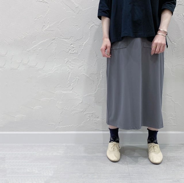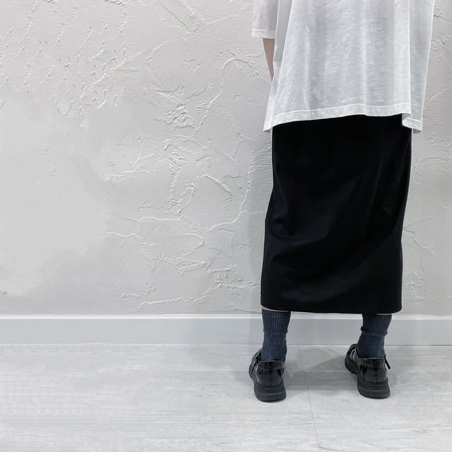 カジュアルに穿きこなせるタイトスカートです。レーヨン混で柔らかさと張り感があるカットソー生地が特徴。
