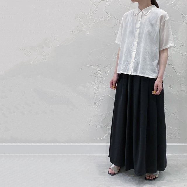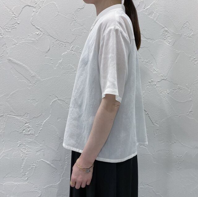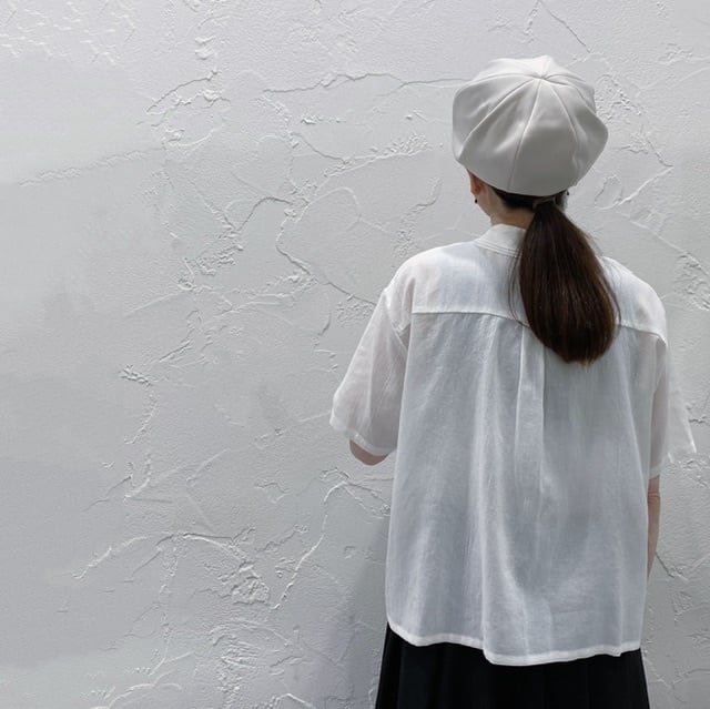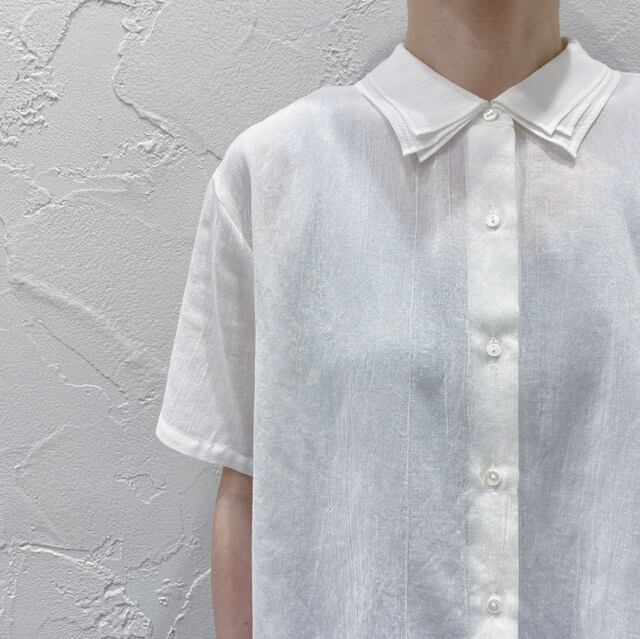 楊柳のような涼しげな素材が特徴。ランダム襟が3枚重なり甘くないフリルのようなデザインのシャツに仕上げました。