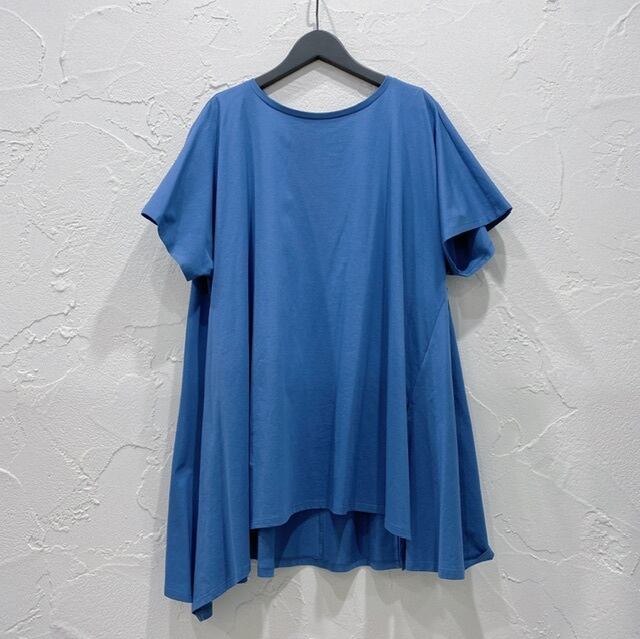 ヒップラインが隠れる丈ですが、左右の裾をアシメトリーにさせ軽やかな雰囲気になっています。