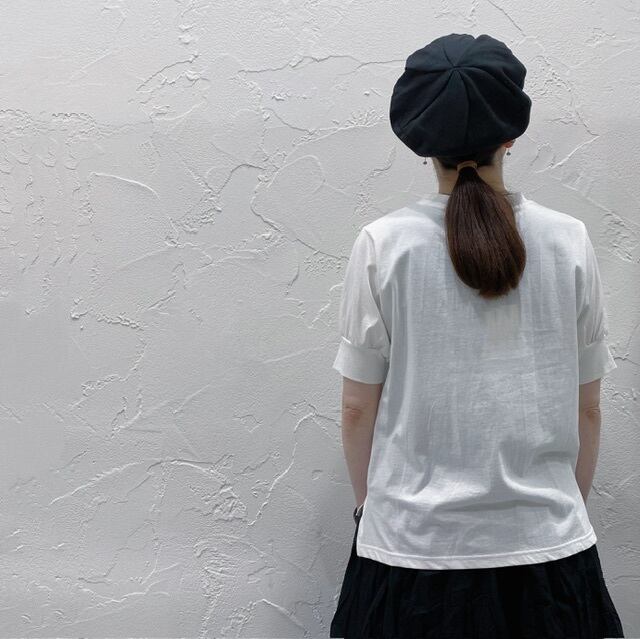 袖口のパーツ上にギャザーを施し、程よく膨らむ袖のデザインがポイント。