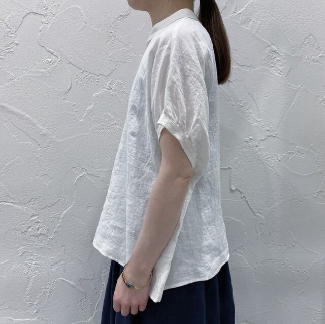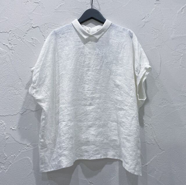 柔らかなリネンを使用したチビ衿のシャツプルオーバーです。