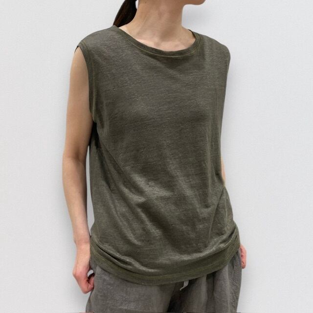 程よくラフなサイズ感の涼しいスリーブレスTシャツ。