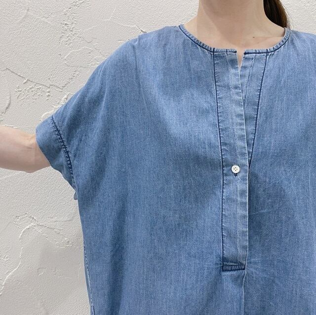 ゆったりシルエットにキーネックの衿元が涼しそうなチュニックです。