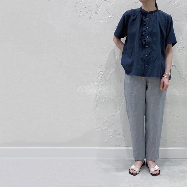 肌にあたると適度な冷たさと柔らかさを感じる生地は超細番手のラミー(麻)と再生繊維のセルロースを使うことで生まれています。