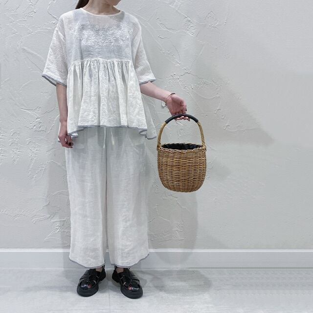 maison de soilの"80'S HANDWOVEN LINEN PLAIN WITH SELVAGE"シリーズのイージーパンツです。