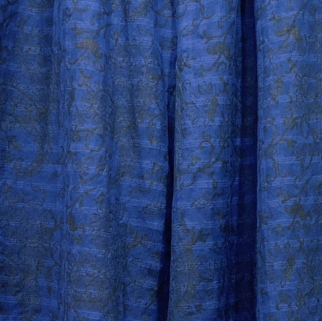 透け感のある大柄のドビーチェックのコットン生地の上から、"ブロックプリント"と呼ばれるインド伝統のプリント技法により、柔らかな曲線が優雅な印象のペイズリー柄をプリントしました。