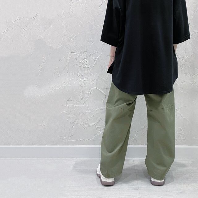 全体的にゆったりとしたシルエットで、裾に向かって少し絞れたデザインです。