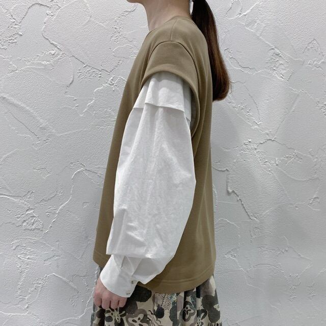 身頃部分は裏毛で袖は布帛の重ね着見えする1枚。