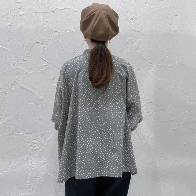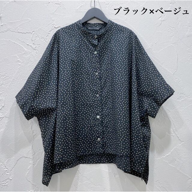 mizuiro indの定番アイテムでもある人気の1枚にドット柄生地を使ったドットスタンドカラーワイドシャツ。