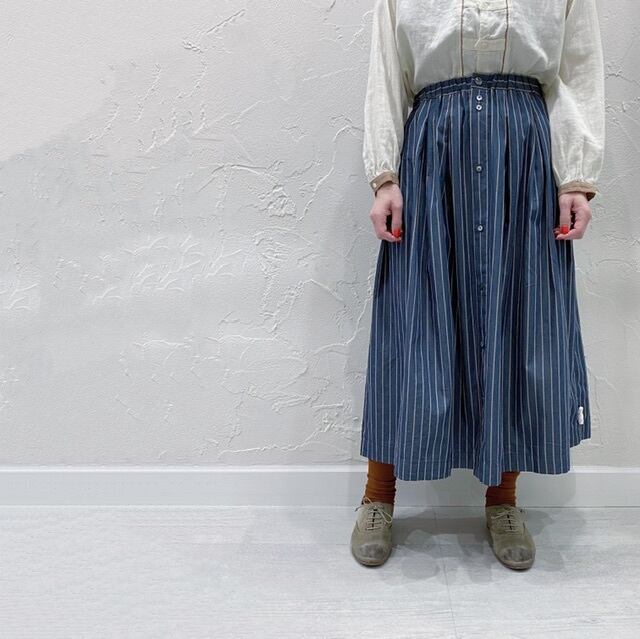 全体にタックが入り、素材の適度なハリ感とあわって綺麗なシルエットです。