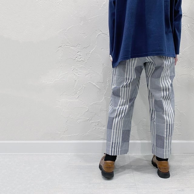 ストライプ柄ですが、表裏の切り替わり部分に横の切り変わりが入りチェック柄のように見え、2つの柄が組み合わさったように見えます。