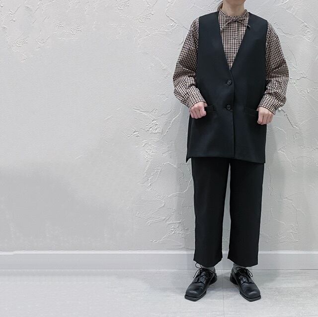 同素材のイージーストレートパンツとセットアップもお勧めです。
