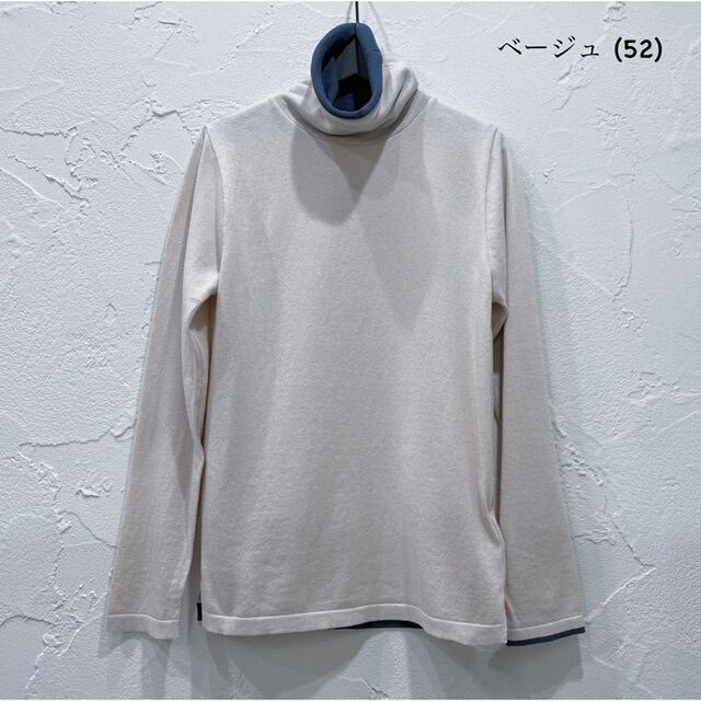 ニットの伸縮性と糸の柔らかさを活かして肌にあたるスッキリとしたサイズ感です。