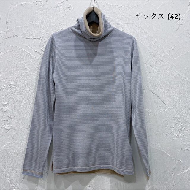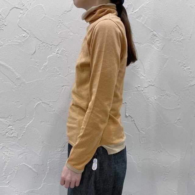 ニットの伸縮性と糸の柔らかさを活かして肌にあたるスッキリとしたサイズ感です。