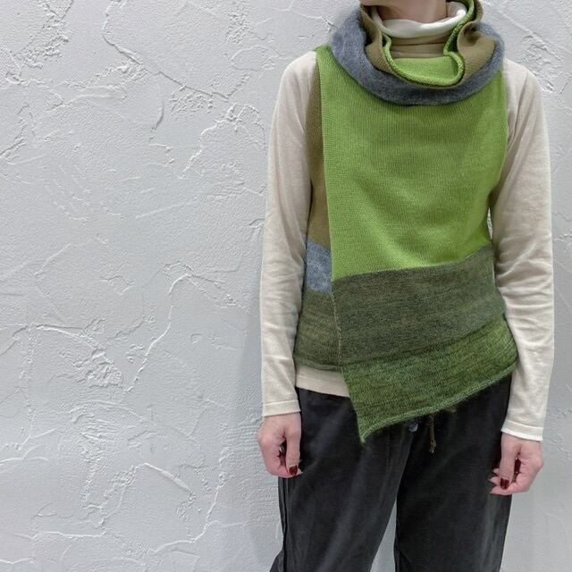 表編みと裏編み、ウールとモヘアのそれぞれを合わせて、違った風合いのボーダーを組み合わせた生地です。