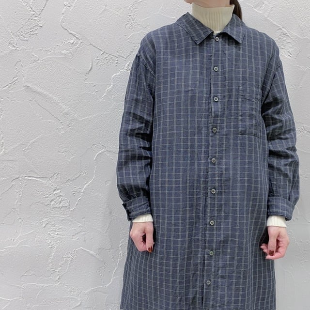 衿のアレンジを楽しめるロングシャツです。