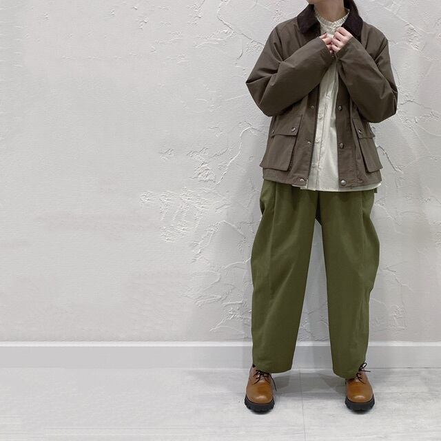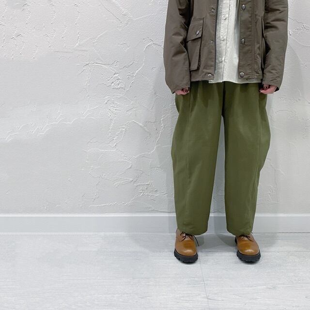 程よい厚みのチノ素材を使用することで、立体的なテーパードシルエットを演出。