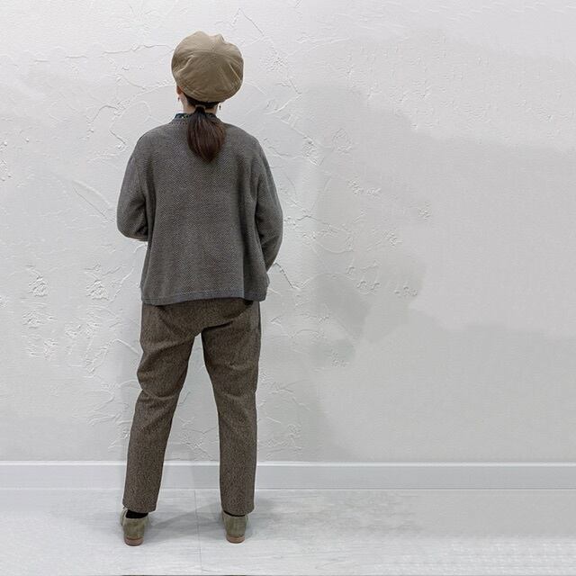 季節の変わり目に使いやすい生地の厚みと綿50%毛50%の組成にしました。