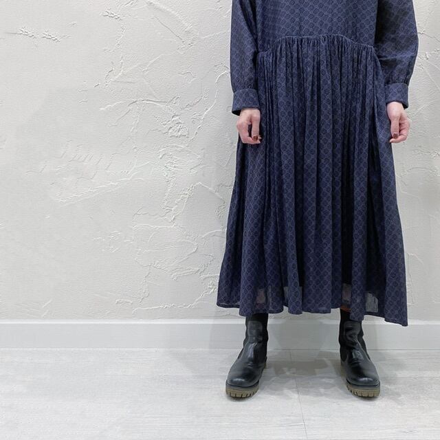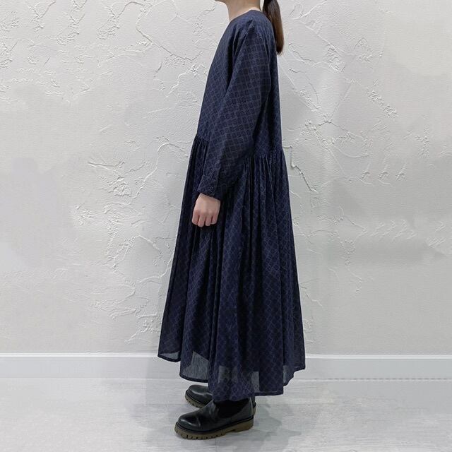 こちらは、ウエストから裾に向かって緩やかに広がるAライン調のプルオーバーワンピース。
