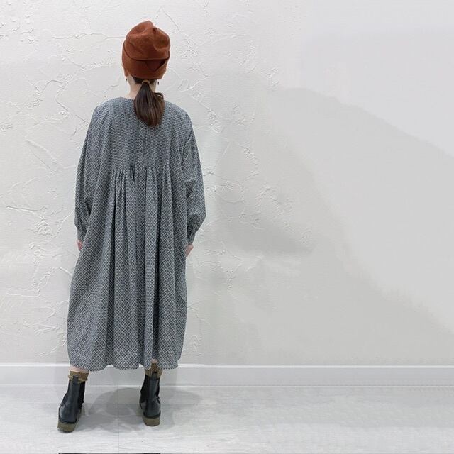 maison de soilの、"60'S COTTON REPETITIONAL FLOWER BLOCK PRINT"シリーズのクルーネックワンピースです。