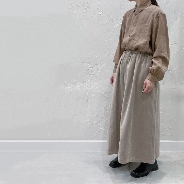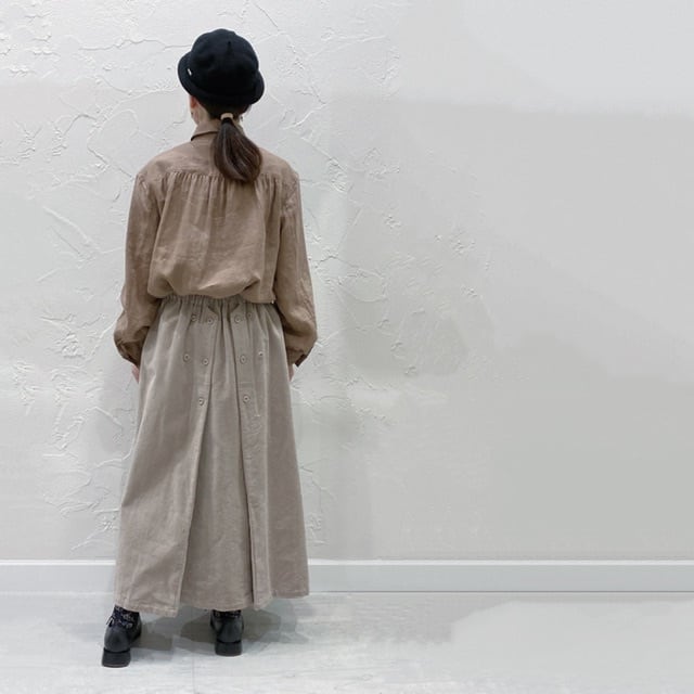 コルトレイクリネンの艶感や細かなギャザー使いも相まって、上品な印象も演出してくれる1枚です。