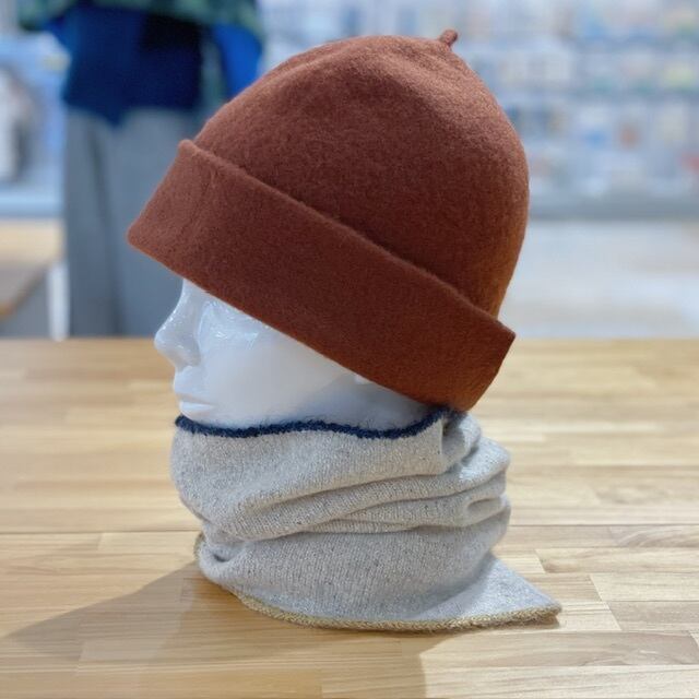 シルクのネップヤーンとウールカシミヤのとても軽いスヌードです。