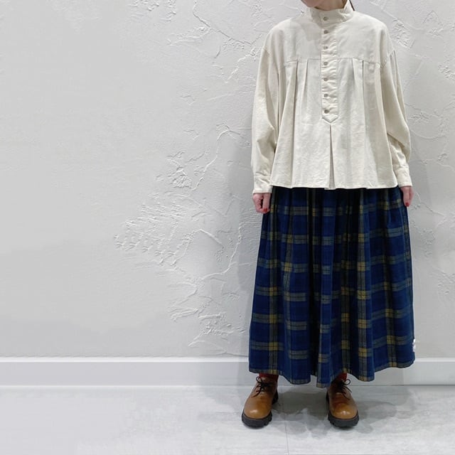 生地の厚みを考慮したタックデザインを採用し、裾広がりのデザインにしました。