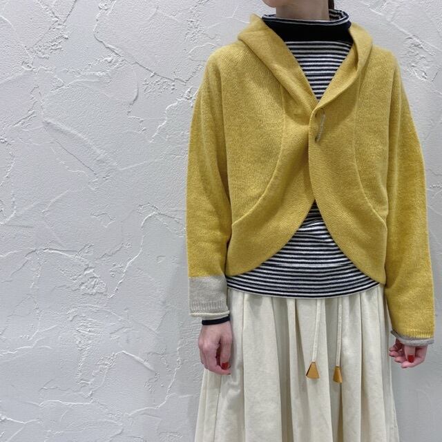 綿とウールの掛け合わさり、ウールの保温性とふくらみがあり、綿のしっとり風合いも肌で感じることのできるニット生地を使用しました。