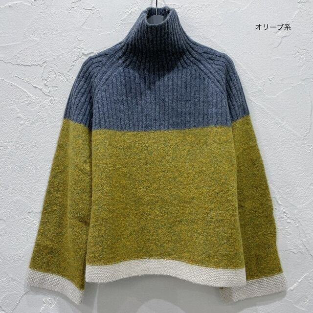 ウールの中でも最高級のメリノ種の羊からとれるメリノウールの中でも特に繊維が細いエクストラファインメリノウールとリサイクルナイロン×アルパカを使用した、タートルネックニットプルオーバーです。