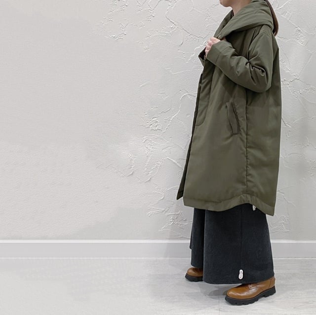 裾のラインはダウンの見た目の重い印象を軽減するために、シャツラウンドのような形です。