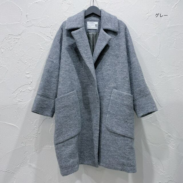 大きめの襟は顔まわりを華やかに見せつつ、小顔効果もプラス。表情のある柔らかなウール素材により、暖かさと着心地の良さを兼ね備えた一枚です。