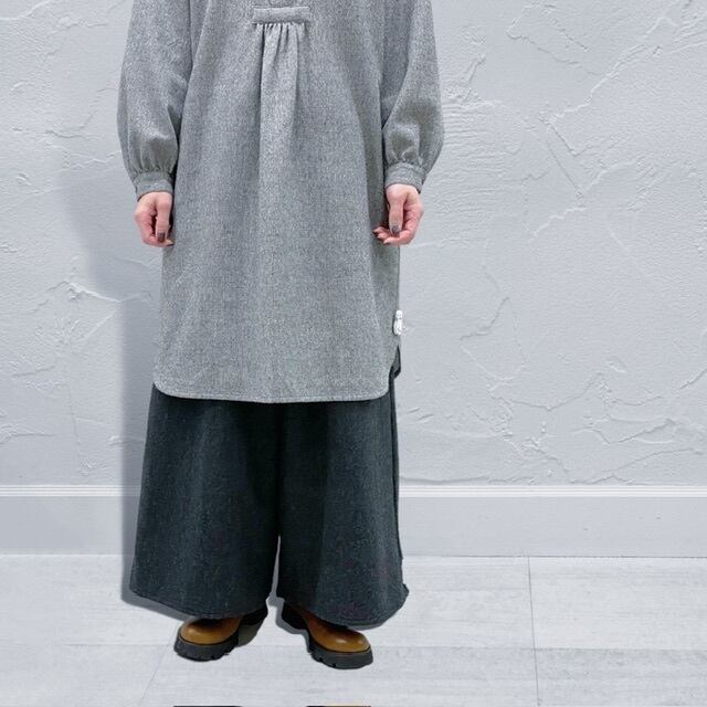 脇からまっすぐのシルエットとちょうどよい着丈で、パンツスタイルには合わせやすくなっています。