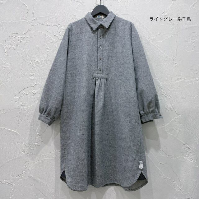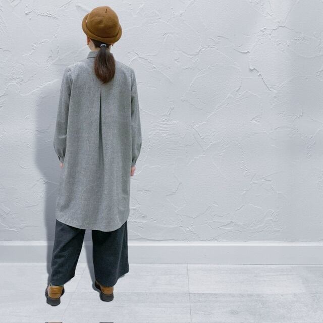 衿は癖がなく着やすいシャツ衿で、シルエットが崩れにくいプルオーバーの仕様にしました。